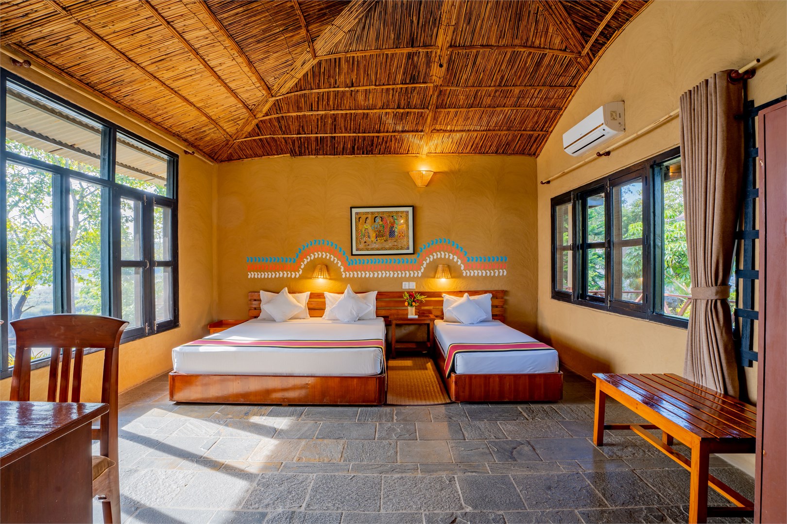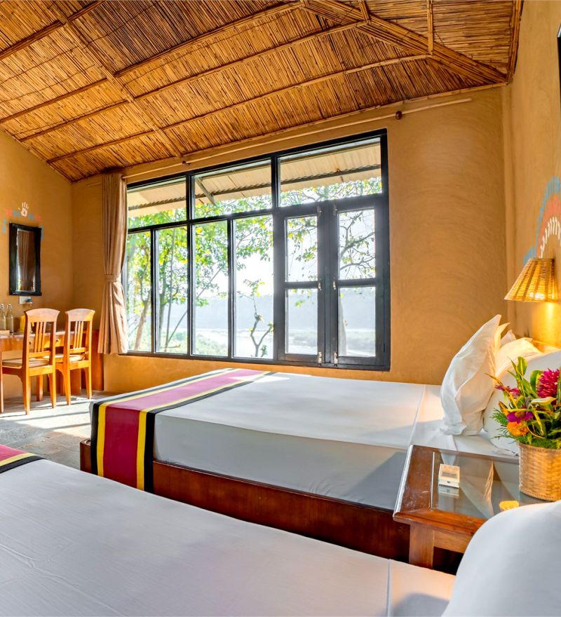 Escape to Jungle Villa Resort, where verdant landscapes and the serene Rapti River greet you daily. Just steps from Chitwan National Park, enjoy a perfect blend of comfort and wilderness, with unforgettable wildlife encounters and natural beauty right outside your window.